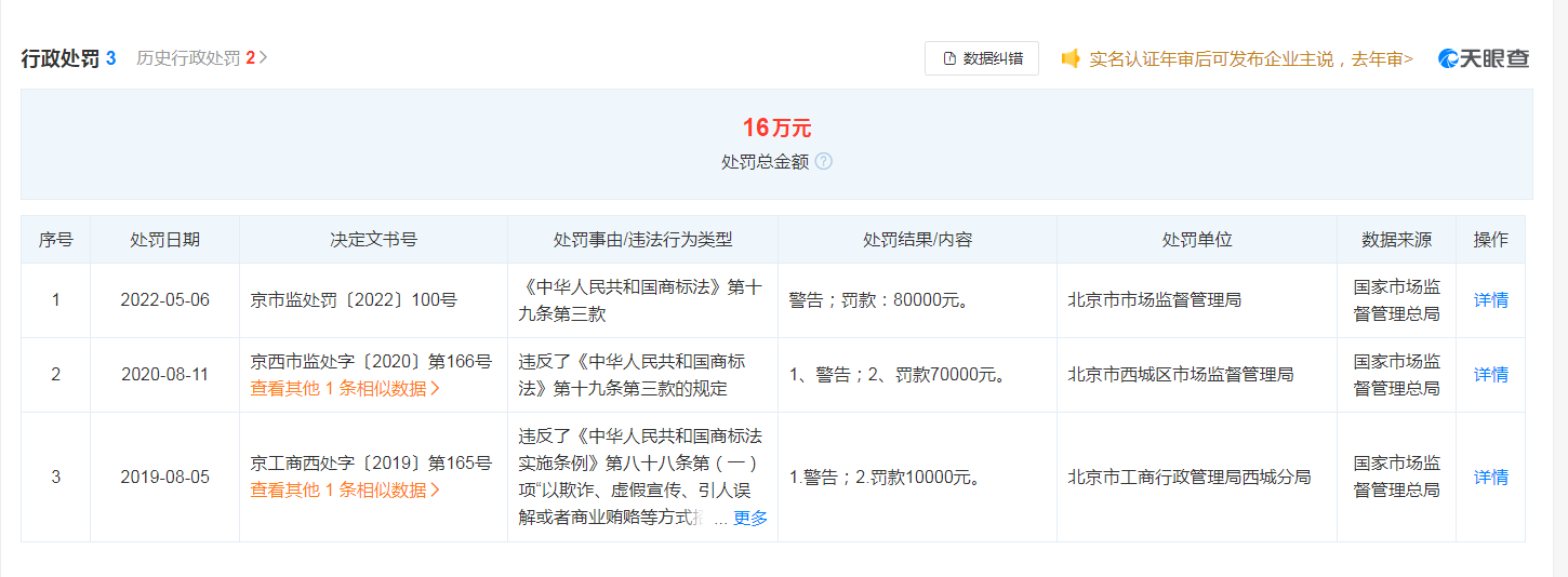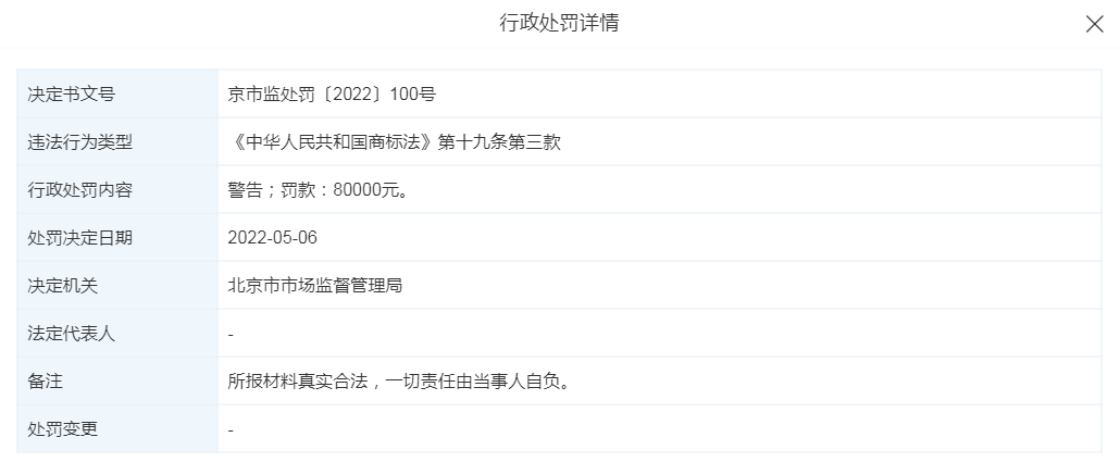 天眼查App显示,近日,北京九鼎嘉盛国际知识产权代理有限公司因违反商标法,被北京市市场监督管理局罚款8万。具体处罚事由为,当事人作为商标代理机构,受多个代理人委托注册申请“冰墩墩”商标,损害了北京2022年冬奥会和冬残奥会组织委员会现有的在先权利,造成了不良社会影响,给予从重处罚。