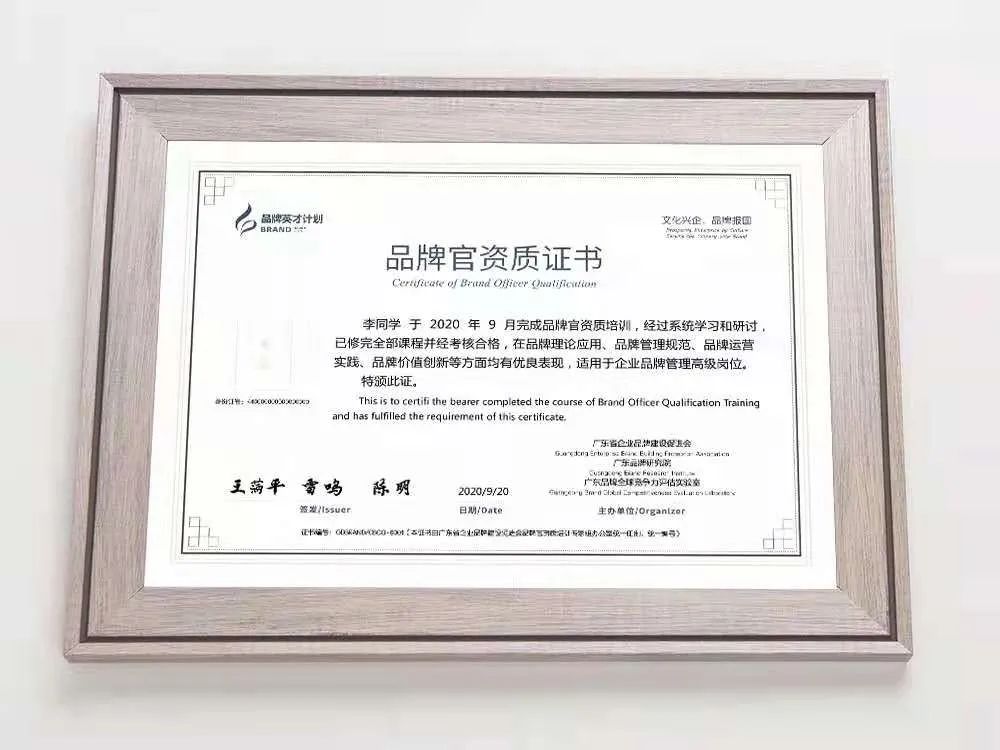 参加品牌英才计划-品牌官资质公益培训的学员,通过品牌官必修课程、选修课程完整的培训和考核,考评通过后可获得“品牌双证”——由广东省企业品牌建设促进会颁发的(报国家人社部认可)品牌官资质证书——“品牌专员”、“品牌经理”、“首席品牌官”等岗位职务的资质证明,以及广东省人社厅颁发的初级、中级、高级三个职称层级的品牌工程技术人才!
