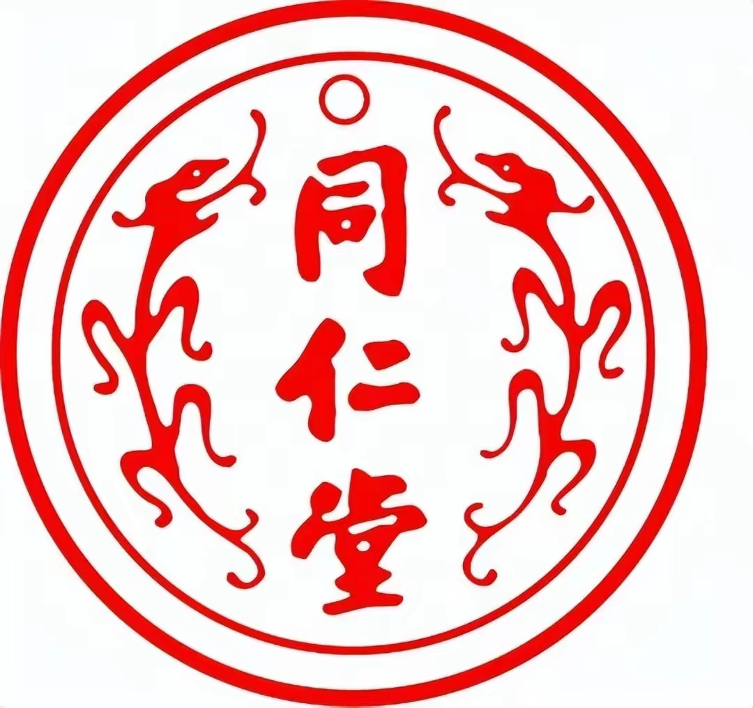 北京同仁堂制药的“同仁堂”图形文字组合商标,通过中式瓦当造型为基底,龙图形左右呼应,将以行楷字体书写的“同仁堂”三字包围在中间,充满了古朴厚重之气,凸显了其作为中华老字号源远流长的历史底蕴。