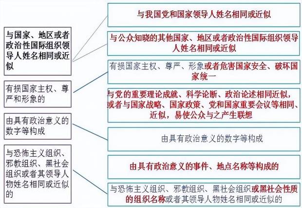 《指南》结合实践,进一步明确任何危害国家安全,破坏国家统一的标志均属于具有“不良影响”禁止使用的标志。同时,在具有政治不良影响部分,总结近年来审查实践,进一步向社会明确与党的重要理论成就、科学论断、政治论述、国家战略、国家政策、党和国家重要会议等相同、近似的标志以及由具有政治意义的事件、地点名称构成的标志均属于具有政治不良影响的标志。