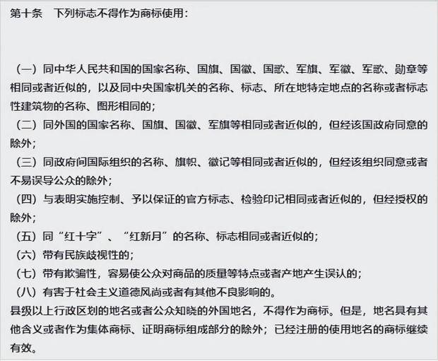 所以,各位申请人在命名商标之时,一定要避开上述标识。因为这类商标,不仅难以获准商标注册,而且被禁止使用。一旦投入使用,不仅面临必须撤换标识的风险,还有可能面临市场监督管理局的巨额罚款。
