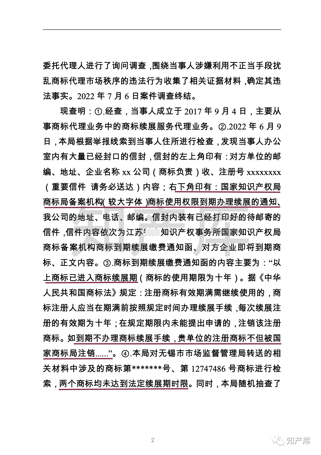 无锡梁溪市监局接到无锡市监局转送材料,经检索,涉及的**号、**号商标均未达到法定续展期时限。随机抽查2022年6月9日在当事人住所现场查获的待寄邮件中的涉案**号、**号商标进行检索,上述两个商标也未达到法定续展期时限。