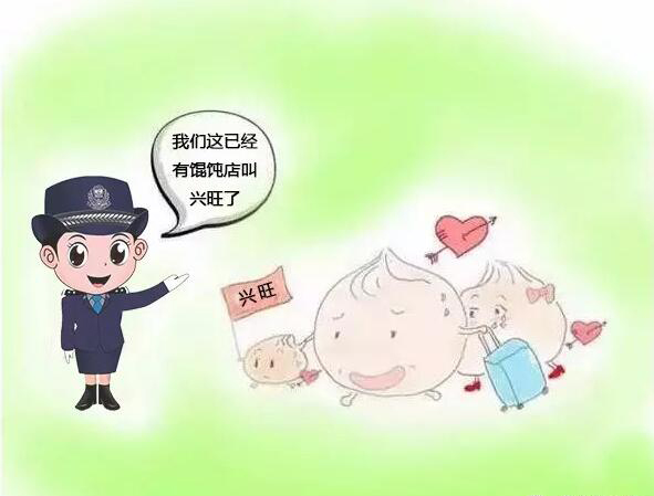 其实,上面这个例子出所出现的这些问题都可以用注册商标解决,当你千辛万苦核准到一个字号名称叫“兴旺”后,第一时间就去注册了“兴旺”商标。拿到了商标证,如果左邻右舍想搭个便车,叫“兴旺馄饨”,你可以去工商部门去投诉他商标侵权,立即停止使用这个名称。