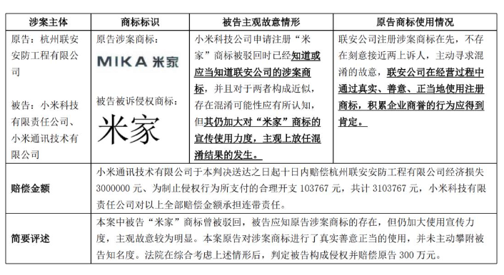 小米科技有限责任公司、小米通讯技术有限公司与杭州联安安防工程有限公司侵害商标权纠纷二审民事判决书