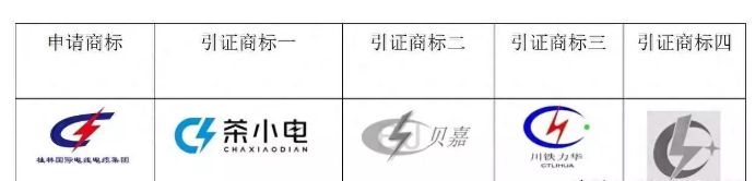 针对理由一,我司认为:申请商标与各引证商标主要是图形部分存在一定近似,但申请商标为图文组合商标,图形部分以红色闪电穿过蓝色的“C”形弧线构成字母“G”,对应“桂”字。图形下方为申请人企业简称,图形文字均起到指向申请人的作用。而引证商标的图形外观、设计手法、视觉效果都与申请商标存在极大差异,加之各商标显著识别部分不同。故我司从商标的构成要素、整体外观、显著识别部分等方面进行对比,主张申请商标与引证商标不构成近似,共存于市场不会让消费者产生混淆和误认。