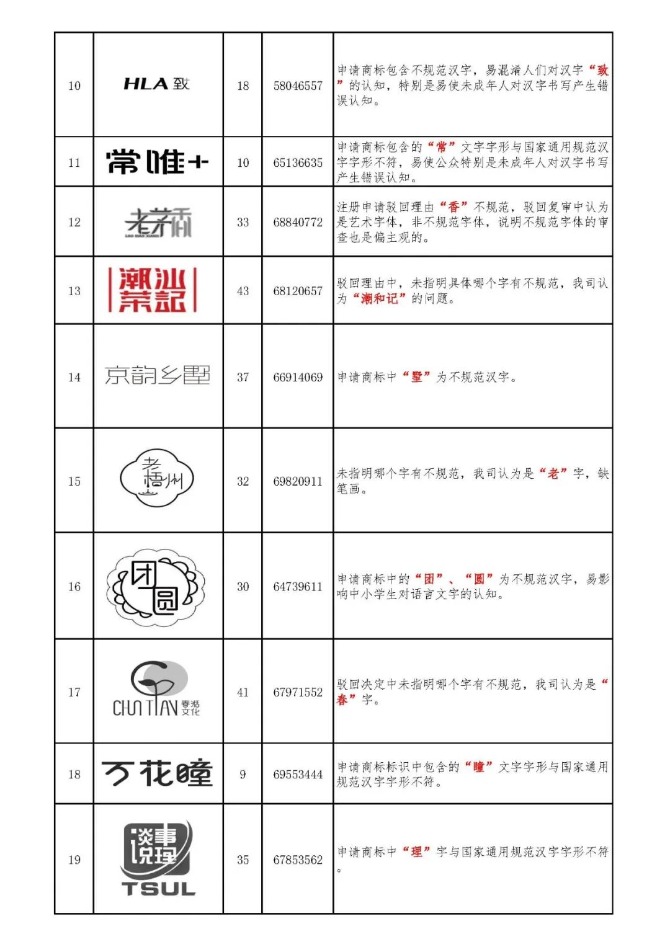 举出上述案例的目的,主要是为了提醒广大设计师、企业主、市场部及品牌部的工作人员,在商标设计过程中要高度重视不规范字体的问题。如果无法准确判断设计后的商标是否存在此类问题,建议直接避免使用可能引发争议的设计元素。当然,如果某个设计确实非常出色且难以割舍,也可以考虑同时申请普通字体版本和设计后的字体版本,这样即便设计后的字体版本存在风险,也还有普通字体版本作为备选,从而确保商标确权的顺利进行。