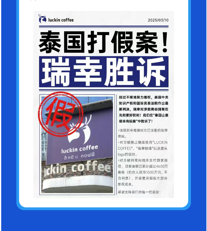在泰国喝到“瑞幸咖啡”别急着打卡!你可能遇上了“山寨版”——鹿头Logo方向不对、菜单全是泰文,背后竟牵扯出一场中泰两国的商标大战。从惨遭败诉到逆风翻盘,瑞幸这场跨国官司打了三年,剧情比泰剧还跌宕起伏!