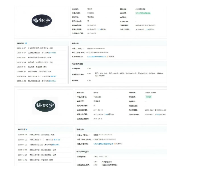 小编通过查询发现,在品牌创立初期该公司便十分重视商标的注册工作。2011年,公司正式成立后不久,便着手申请“杨铭宇黄焖鸡米饭”商标。