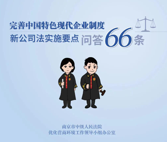 编者按:公司是最重要的市场主体,《中华人民共和国公司法》是社会主义市场经济制度的基础性法律。2023年12月29日,十四届全国人大常委会第七次会议审议通过了新《公司法》,对于全面落实产权平等保护、健全公司资本制度、促进公司治理制度革新、强化中小股东保护具有里程碑意义。南京中院立足司法实践和公司法最新制度变化,精心编撰了《完善中国特色现代企业制度 新公司法实施要点66条》(简称《66条》),提供从公司设立登记、公司资本、股东权利、经营治理到解散注销的全生命周期的立体式法治导航。即日起,本公众号将陆续刊发《66条》的相关内容,以期引导公司主体依法开展内部治理和经营管理活动,为南京打造更具竞争力的法治化营商环境贡献司法力量。