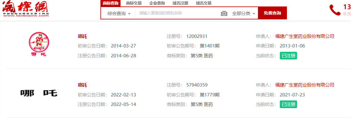 证券之星消息,根据企查查数据显示,近日福建广生堂药业股份有限公司新提交“哪吒”商标注册申请。商标申请详情如下:
