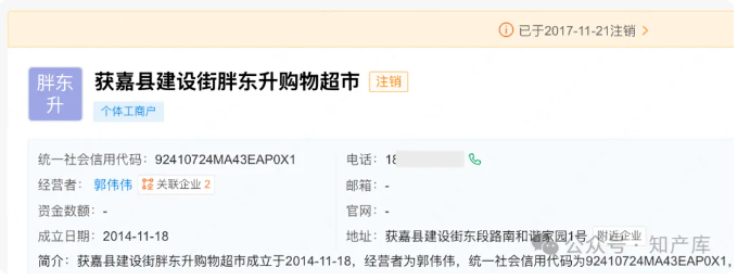 但这家2012年登记的最早一家胖东升购物超市个体户,已于2020年6月注销。