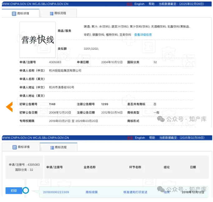 两个带有“营养快线”的饮料商标归属不同权利人!