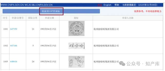 事实上,杭州娃哈哈集团有限公司名下,拥有商标有1100+