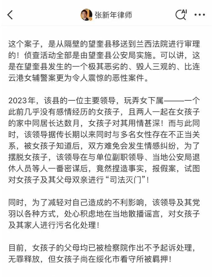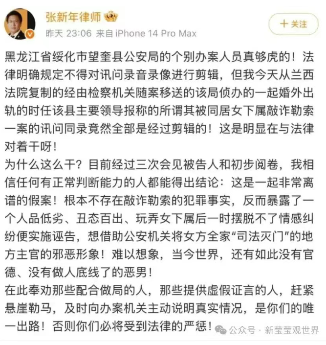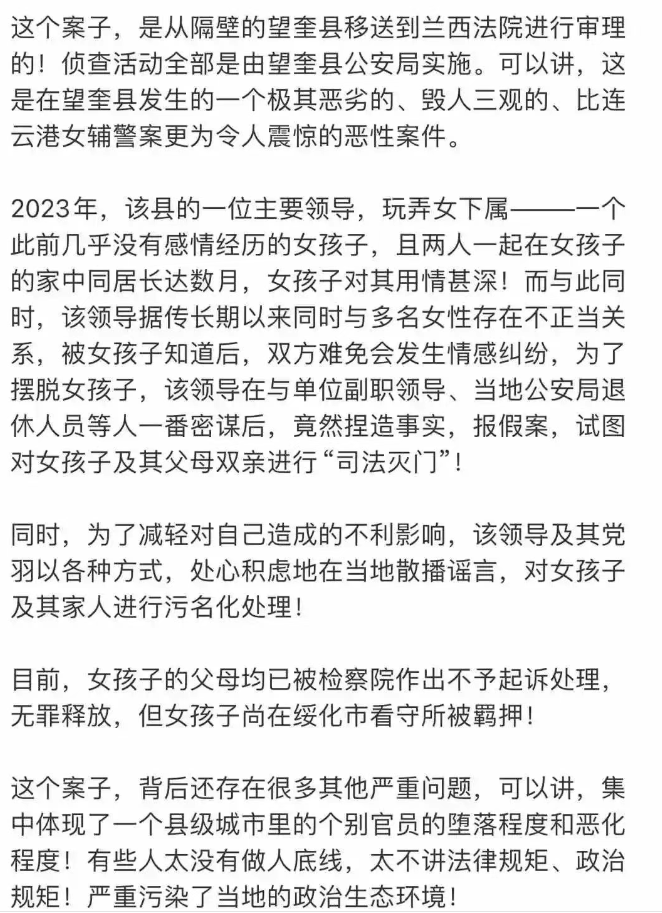 就在此前他在网络曝光了某县领导玩弄女下属后摆脱不了情感纠缠,又诬告女下属敲诈勒索的案子!这就是女辅警敲诈勒索案的新版!