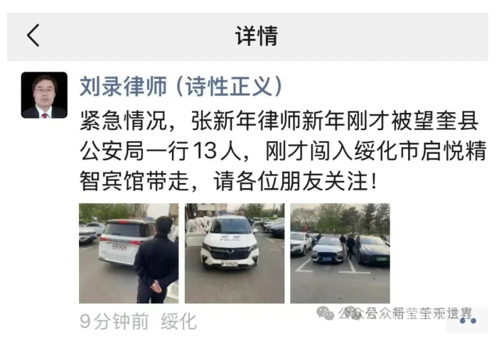 昨天一则张新年律师在宾馆被带走的消息,火速传遍了律师圈,大家愤怒不已,转发声援,心急如焚!