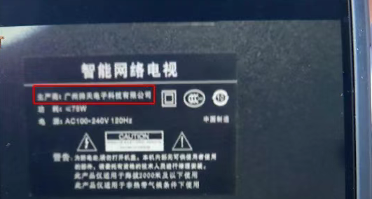 刘女士:卖家客服拍了一圈(照片)过来,我看后面显示是广州帅天电子科技有限公司,我就查了一下,华为没有这家代工厂。我就赶紧打了华为售后电话,型号报给他们,他们说他们家没有这款电视。