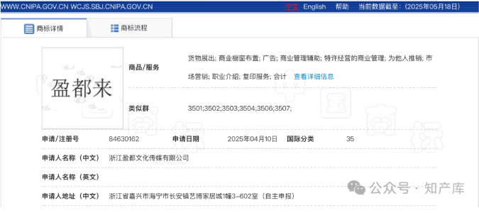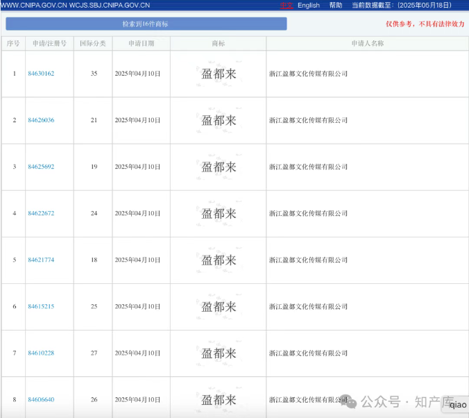 “盈都来”商标4月10日已经申请: