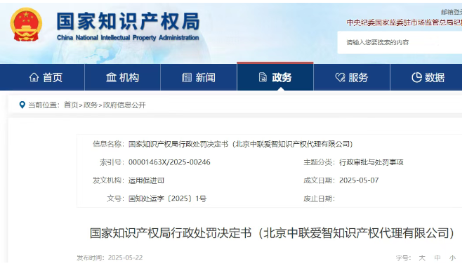 当事人上述行为属于《市场监督管理严重违法失信名单管理办法》第九条第(二)项“从事严重违法专利、商标代理行为”,根据《市场监督管理严重违法失信名单管理办法》第二条、第十二条相关规定,决定将北京中联爱智知识产权代理有限公司列入市场监督管理严重违法失信名单,通过国家企业信用信息公示系统公示,并实施相应管理措施。列入期限自2025年5月7日起至2028年5月6日。期满一年后,当事人可依据《市场监督管理严重违法失信名单管理办法》第十六条、第十七条规定向我局申请提前移出严重违法失信名单,停止公示相关信息并解除相应管理措施。