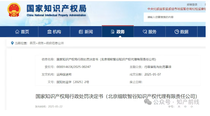 当事人上述行为属于《市场监督管理严重违法失信名单管理办法》第九条第(二)项例举的“从事严重违法专利、商标代理行为”,根据《市场监督管理严重违法失信名单管理办法》第二条、第十二条相关规定,决定将北京细软智谷知识产权代理有限责任公司列入市场监督管理严重违法失信名单,通过国家企业信用信息公示系统公示,并实施相应管理措施。列入期限自2025年5月7日起至2028年5月6日。期满一年后,当事人可依据《市场监督管理严重违法失信名单管理办法》第十六条、第十七条规定向我局申请提前移出严重违法失信名单,停止公示相关信息并解除相应管理措施。