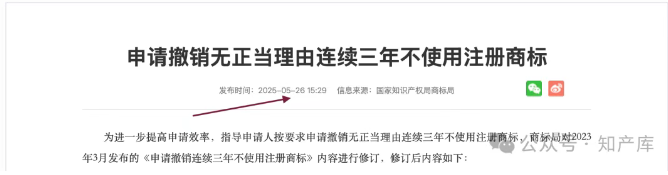 为进一步提高申请效率,指导申请人按要求申请撤销无正当理由连续三年不使用注册商标,商标局对2023年3月发布的《申请撤销连续三年不使用注册商标》内容进行修订,修订后内容如下: