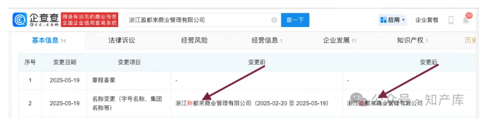 二、5月19日,原“胖都来”商场的经营主体,已向海宁市市场监督管理局申请了变更企业登记,将浙江胖都来商业管理有限公司,更名为浙江盈都来商业管理有限公司。