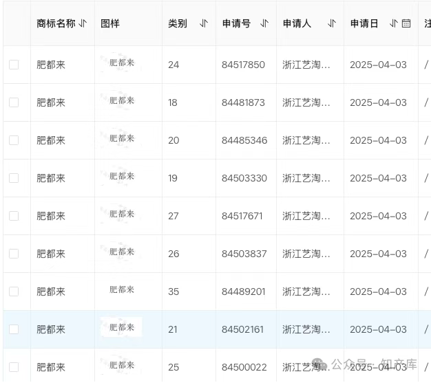 五、在此之前,4月3日,还是第18、19、20、21、24、25、26、27、35类,“肥都来”商标,已经提交注册申请。