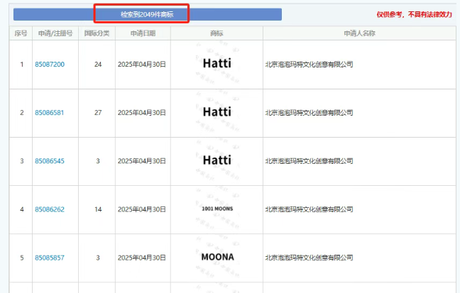 小编认为,泡泡玛特的成功,除了得益于其丰富且强大的 IP 矩阵之外,还源于源于其将知识产权作为核心驱动力。据查询,北京泡泡玛特文化创意有限公司名下拥有超过2000枚商标。