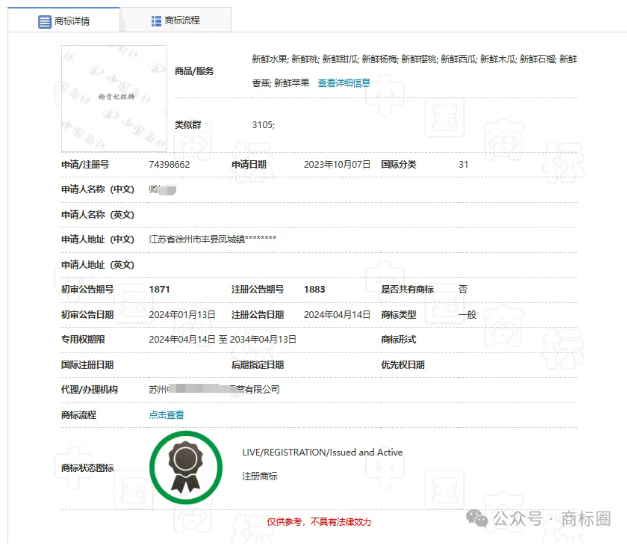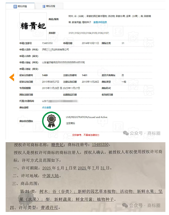 水果商人师先生于2023年10月7日申请了第31类“糖贵妃麒麟”商标,并用于包装销售西瓜。