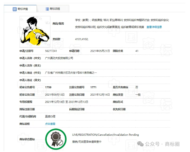这案子也是波折不断,历经一审开庭、撤案、重新起诉,目前仍在审理中。而在2021年,李小龙文化信息咨询(上海)有限责任公司委托律师事务所,对真功夫注册的近似李小龙形象的系列商标提起无效宣告请求。国知局经过审理,在2022年8月和2023年2月作出系列裁定,认为李小龙在争议商标申请注册之前,就是家喻户晓的公众人物,知名度和影响力极高,真功夫的争议商标与李小龙的肖像及经典动作几近相同,作为商标使用在核定服务上,很容易让消费者对服务的来源等特点产生误认,违反了相关法律规定,所以裁定争议商标无效。