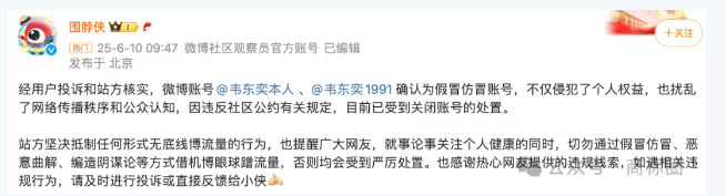 假冒者的动机无非是博眼球、谋私利。在流量经济的驱使下,他们妄图借助韦东奕的知名度,快速获取大量粉丝关注,进而通过广告推广、直播带货等方式实现流量变现。这种行为不仅是对韦东奕的不尊重,更是对广大网友的欺骗,破坏了网络生态的健康发展。