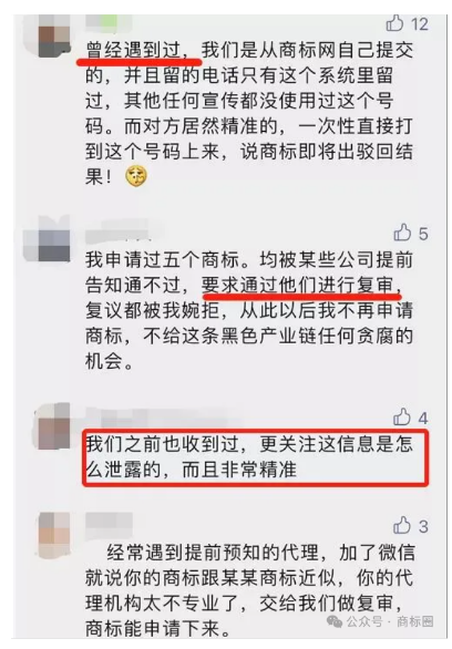 这两个问题过于蹊跷,存在也不是一年两年了,时不时就有人反映收到了类似的“提前通知”。而大部分的“提前通知”,其实是为了招揽商标驳回复审业务,从现有代理机构那里撬客户...
