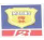 ,该标识整体呈正方形,外轮廓有类似邮票的齿状,底色为藏青色,居中有一红色盾牌,上部有一个白点和环绕发散的六条白线,中间有三个白色的五角星,下部有白色的“梅林天子”字样,并在右上角标注圈R,另底部有红底白字的“MEILINTIANZI”;右侧的标识为