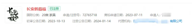 小编注意到,“长安的荔枝”第20类商标被他人注册成功,该枚商标是申请日期为23年7月11日,此时虽然电视剧并未上线,但是同名小说却已经出版,申请者也难以洗清蹭热度的嫌疑。对此,《长安的荔枝》制作方若想不被蹭热度,还是应当持续监测商标动态,及时发现并应对可能出现的侵权情况。