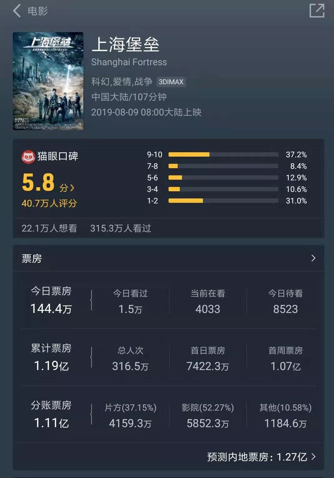 过去七八年“流量鲜肉+IP”模式侵袭影视行业,现在这一模式终于失灵。正在上映的《上海堡垒》就是这样一个标志性事件。《上海堡垒》已经上映7天,票房也只有一亿多,必然巨亏。