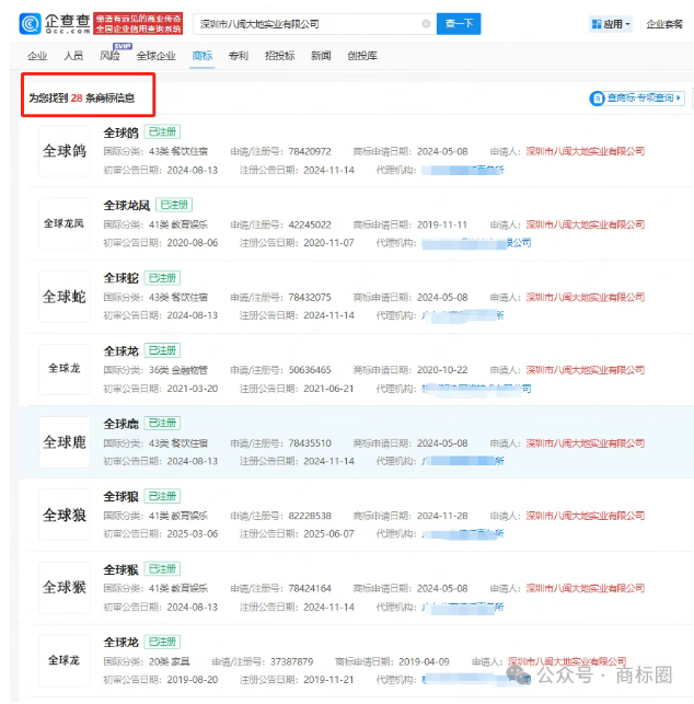 在如今的商业环境中,商标布局对于品牌的保护和发展至关重要。“全球系”店铺爆火后,也有人提出疑问:“全球”这么大气的名字,真的能随便用吗?对此,强先生底气十足地表示,为了这些“全球系”品牌,他投入了超百万元进行商标布局工作,目前已经有20多个商标注册成功,从“全球鱼”“全球鸡”,到“全球龙”,甚至涵盖了十二生肖相关的商标,包括了餐饮住宿、教育娱乐等类别。