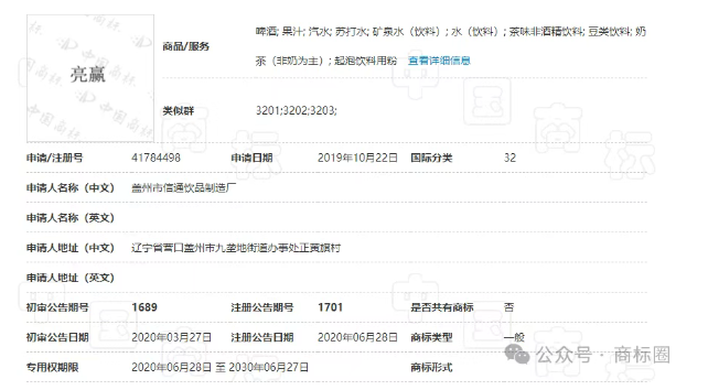 “亮赢”商标的注册人为盖州市信通饮品制造厂,达利园饮品(辽宁)有限公司也是合法注册企业,但“达利园”商标确是达利食品集团有限公司名下。针对网络舆论,“亮赢”品牌自证其广告于2023年6、7月在CCTV7、CCTV17曾有播出,并声明产品上亦标出了代言人本名“李非非”,所以这个产品并没有任何地方欺骗消费者。真的是“完美布局”,怪不得有“底气”要“维权”。