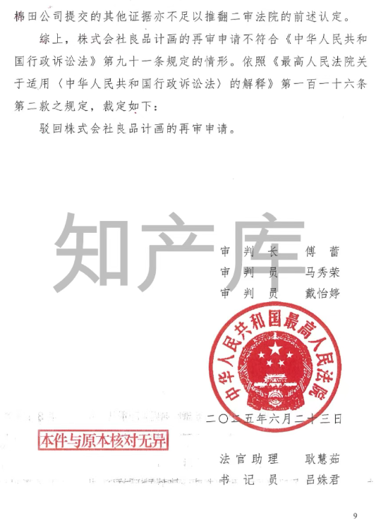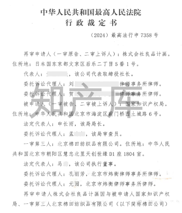 被诉裁定:商评字[2020]第293595号《关于第1561046号“无印良品”商标无效宣告请求裁定书》