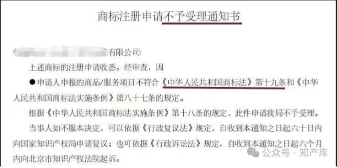 1.注册申请不予受理: