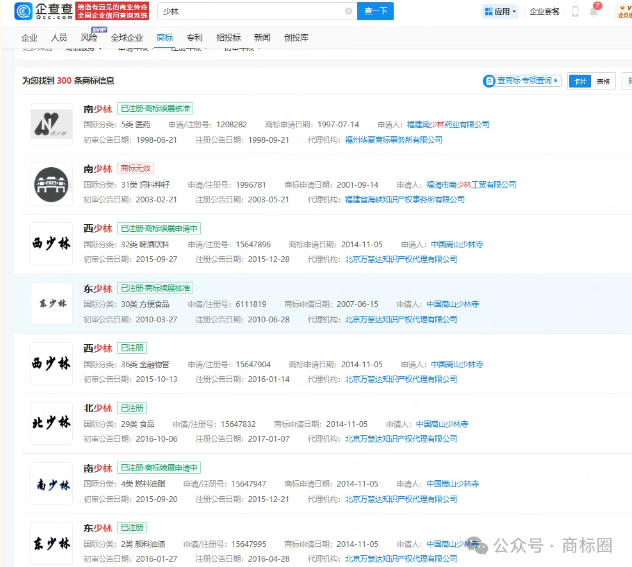 更让人意想不到的是,少林寺将“东少林”“南少林”“西少林”“北少林”全部注册成功。在很多人的认知里,“南少林”常指福建的南少林寺,“北少林”即嵩山少林寺,而东少林和西少林也在一些传说和文化作品中有一定的提及。嵩山少林寺这一注册行为,引发了不小的争议。从品牌保护的角度来看,这确实有助于防止其他机构或个人利用这些名称进行商业活动,避免对少林品牌造成混淆和损害。