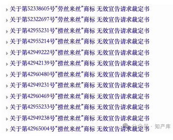 2024年5月,劳斯莱斯公司针对桂林米粉公司名下十二件捞丝来丝、劳丝来丝系列商标,分别提起无效宣告。
