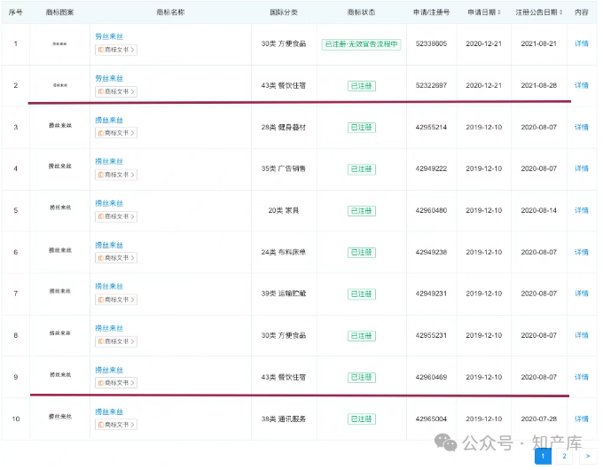 一、先是,捞丝来丝餐饮公司的关联主体桂林米粉公司申请了十二件捞丝来丝、劳丝来丝系列商标。