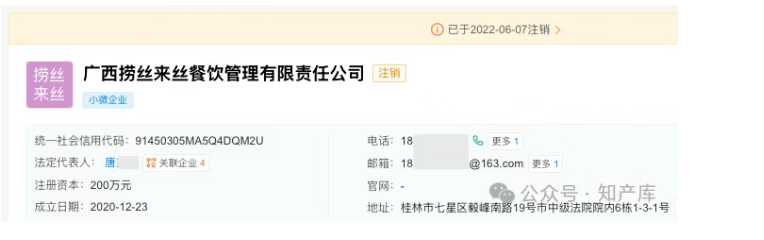2022年6月,唐某登记的捞丝来丝餐饮公司注销。