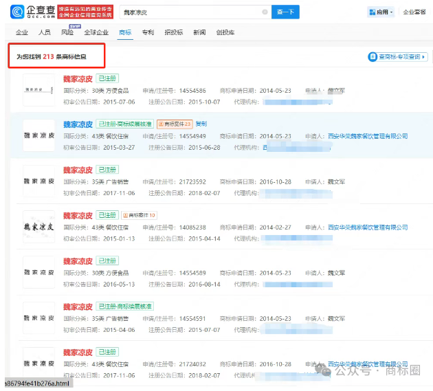 在竞争激烈的餐饮市场中,商标不仅是品牌的标识,更是品牌发展的重要资产。魏家凉皮更是深刻认识到了这一点,在创立初期就展现出了卓越的商标意识,迅速完成“魏家凉皮”核心商标的注册。