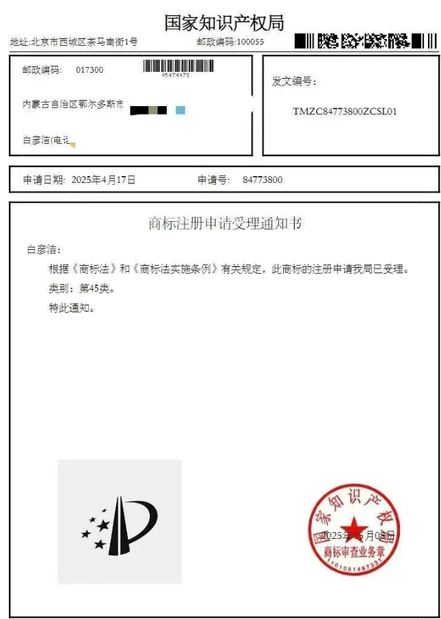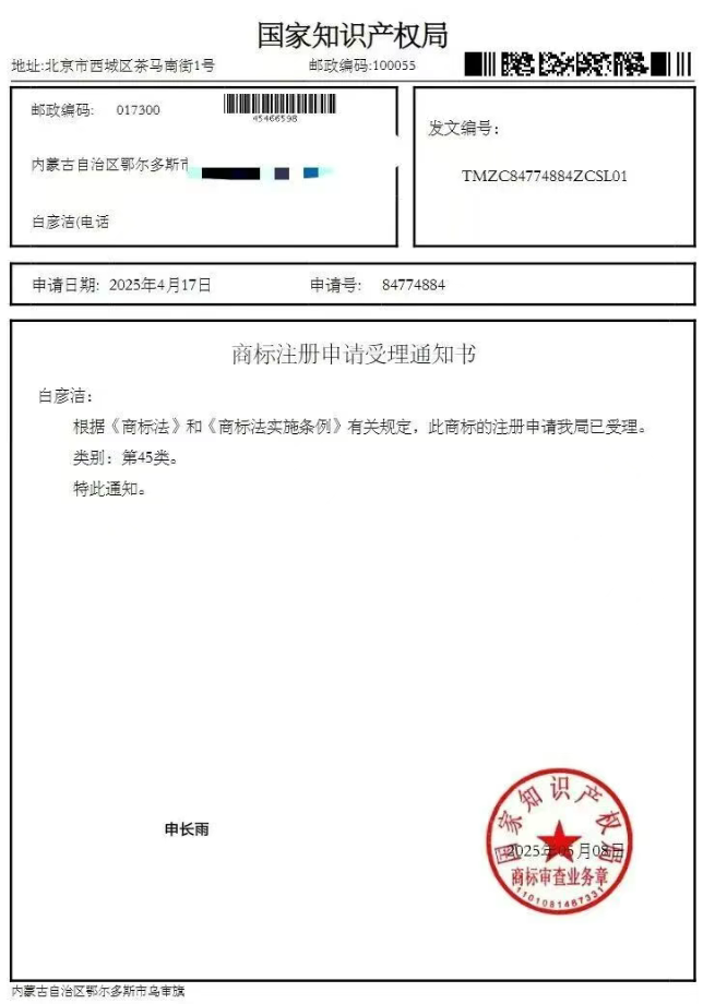 【45类商标证书】,申请文书,缴费记录,初步审定公告,异议答辩,异议人证据目录,全套文件,《无复印件,无全页拍照记录,无视频记录》