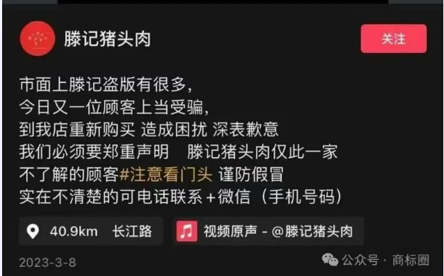 最终,法院认定滕某女儿的行为已构成不正当竞争,判决滕记猪头肉删除侵权内容,并赔偿常某8000元。滕某女儿不服,后上诉至南京市中级人民法院,二审维持原判。