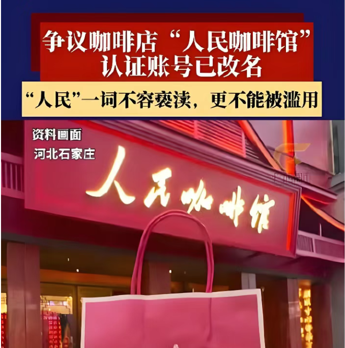 有网友表示,“人民”一词具有强烈的公共属性和政治内涵,这样被用于商业咖啡馆的标识,令人感到突兀和不适。