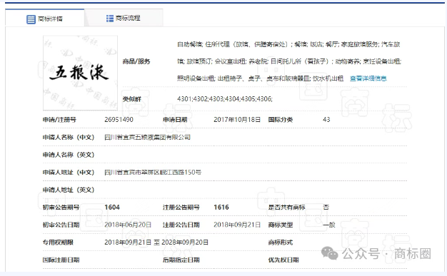 一、申请人是国内著名的酒类生产企业,旗下“五粮液”品牌经广泛宣传和使用,已具有较高知名度,并与申请人形成对应关系。争议商标与申请人的第26951490号“五粮液”商标(以下称引证商标一)构成使用在同一种或类似服务上的近似商标。