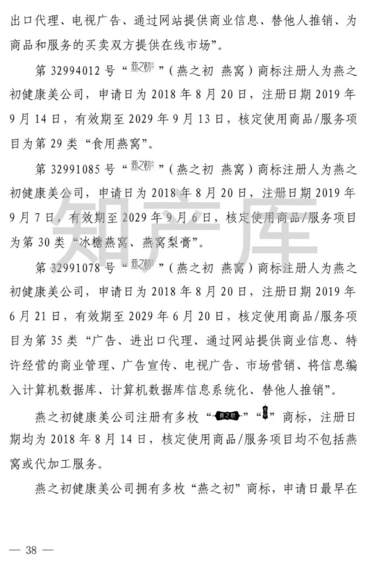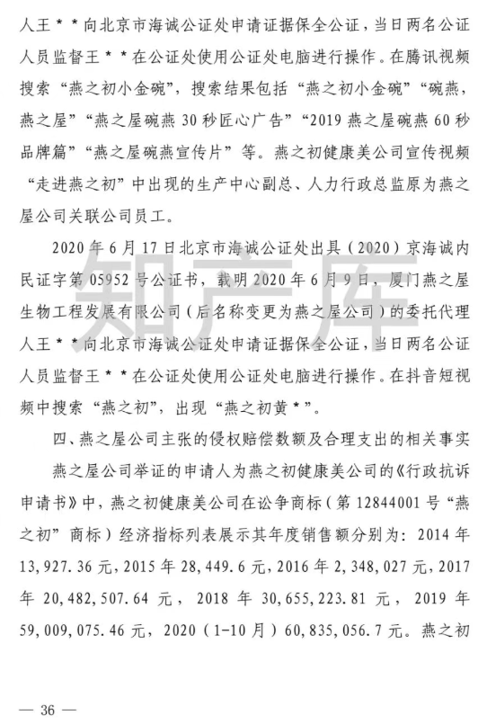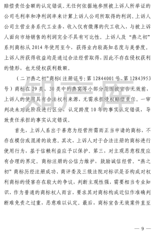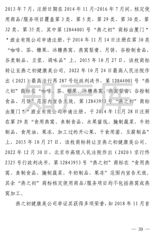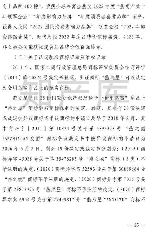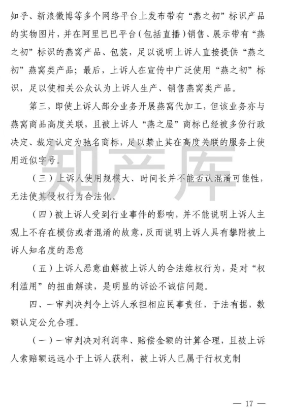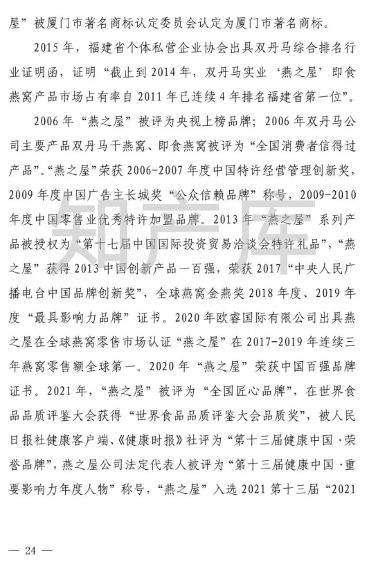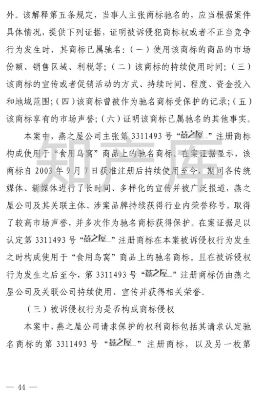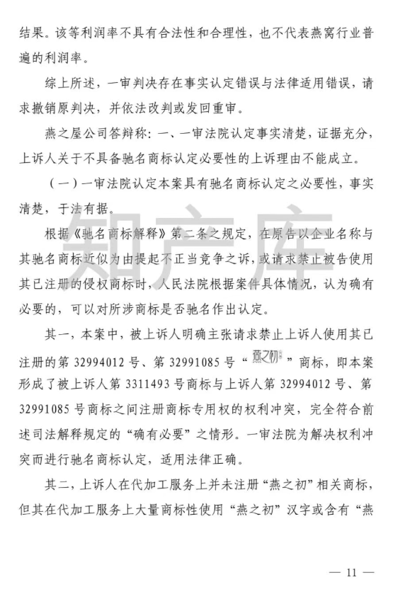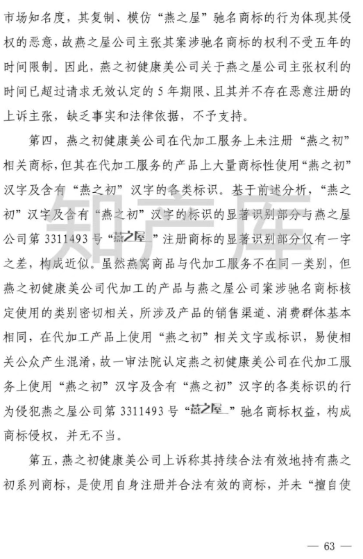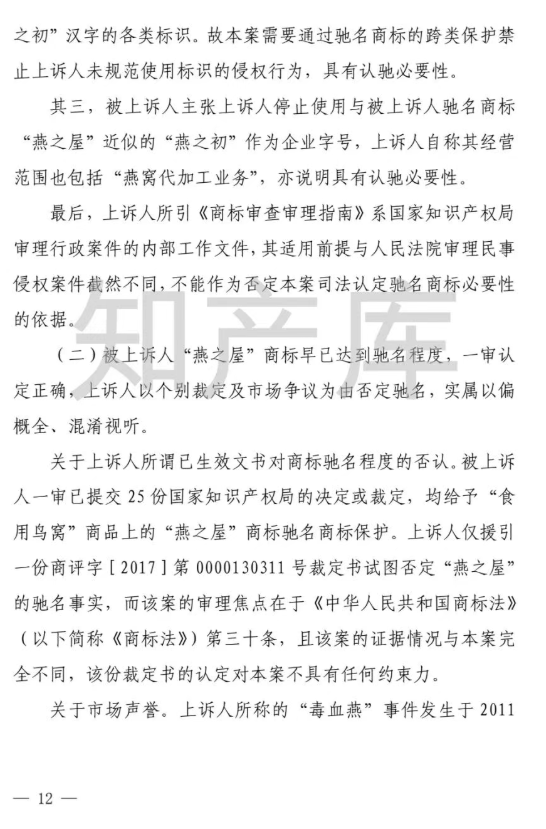 ”诉“燕之初”商标侵权及不正当竞争案,法院认定“燕之屋”为驰名商标,认定“燕之初”构成商标侵权,认定“燕之初”企业字号构成不正当竞争,判赔1000万。