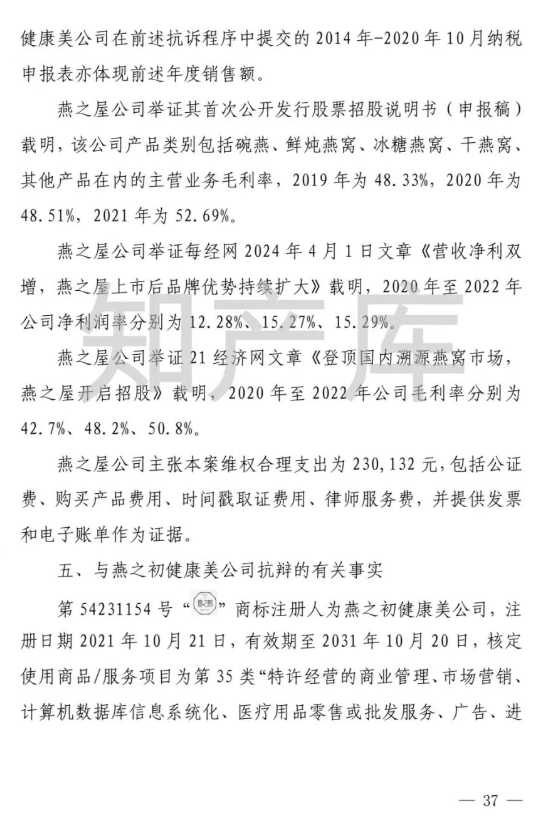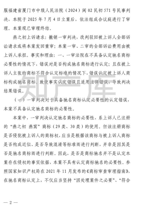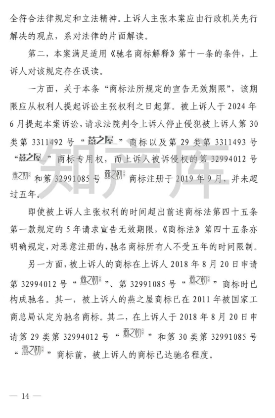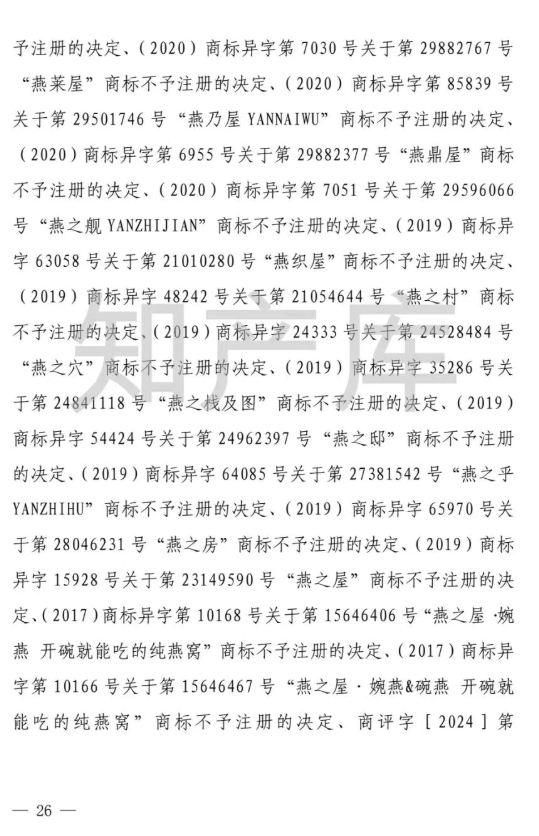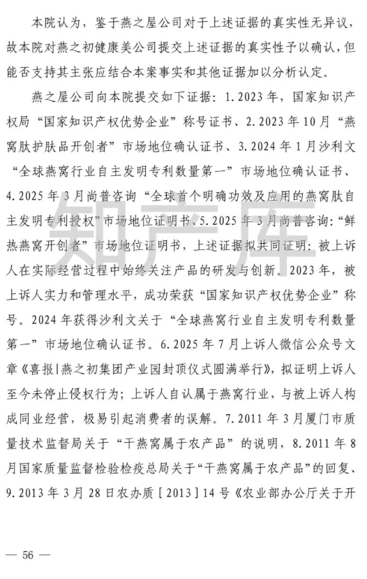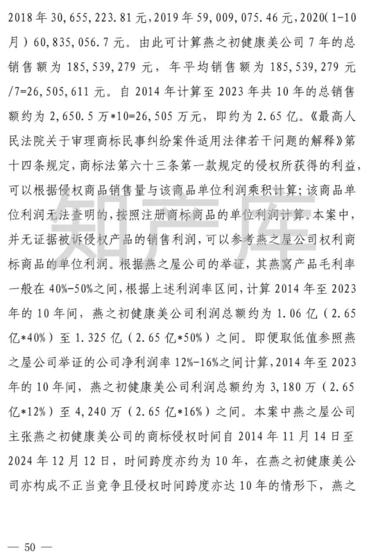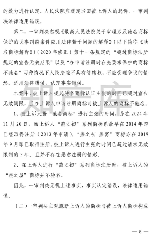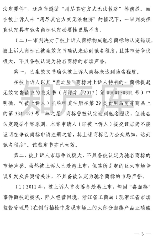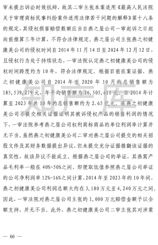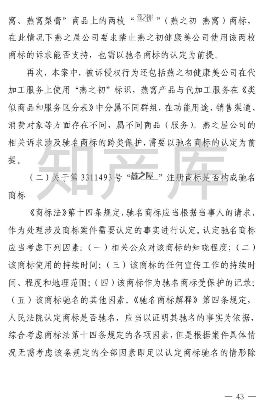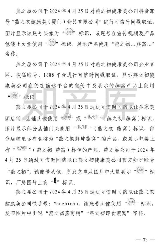 ”诉“燕之初”商标侵权及不正当竞争案,法院认定“燕之屋”为驰名商标,认定“燕之初”构成商标侵权,认定“燕之初”企业字号构成不正当竞争,判赔1000万。