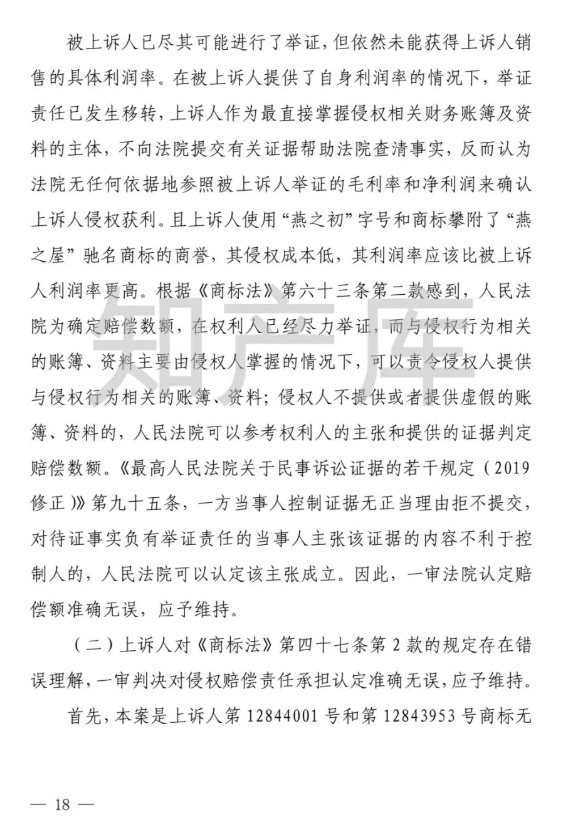 燕之屋诉燕之初判赔1000万|判决书 淘标网